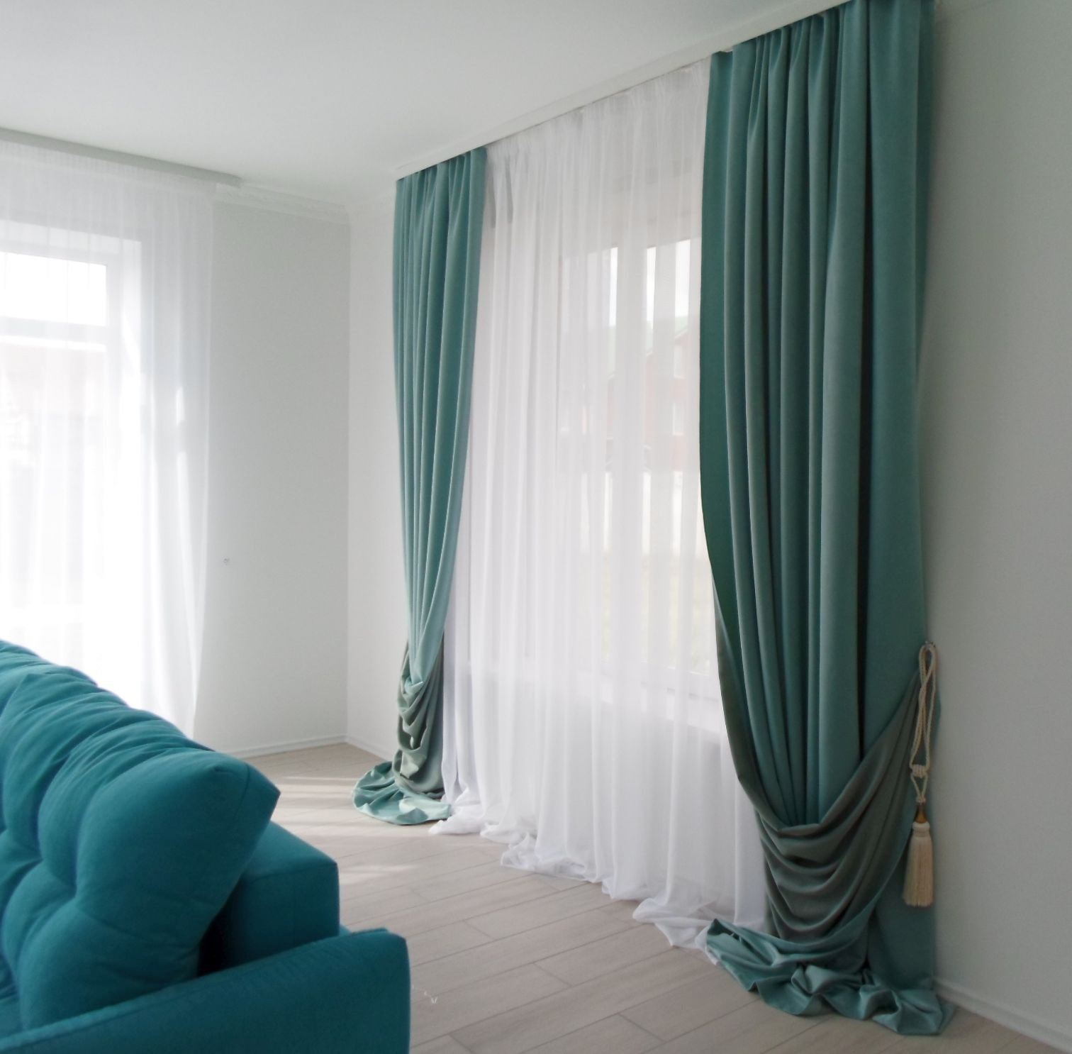 Бирюзовые шторы в интерьере