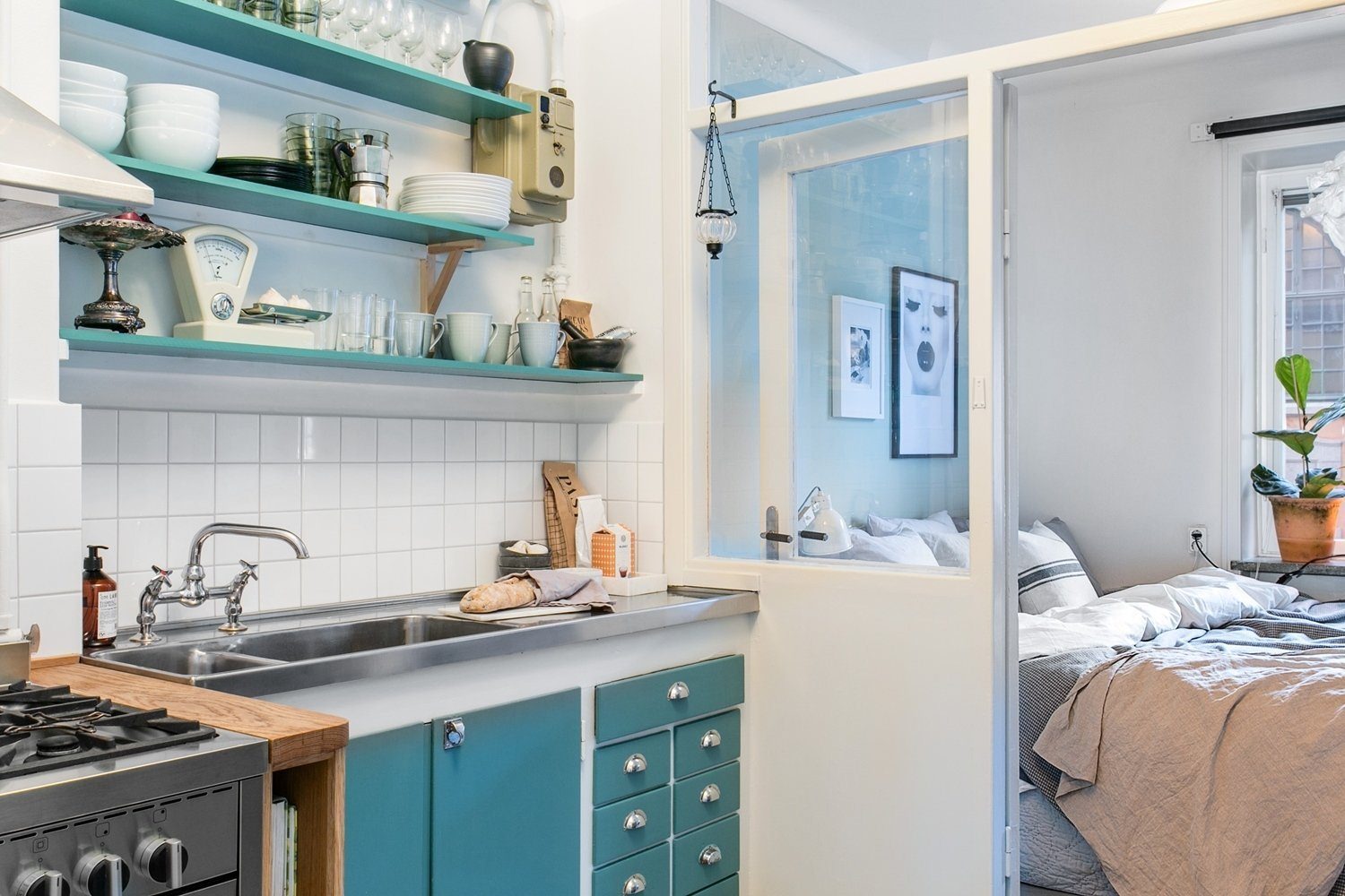 Бирюзовый цвет в интерьере кухни