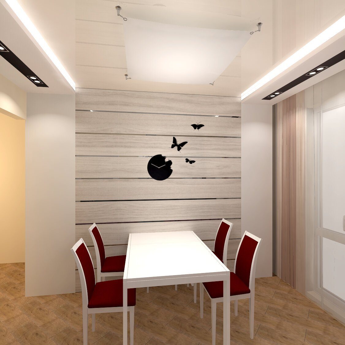 Ламинат на стене в столовой