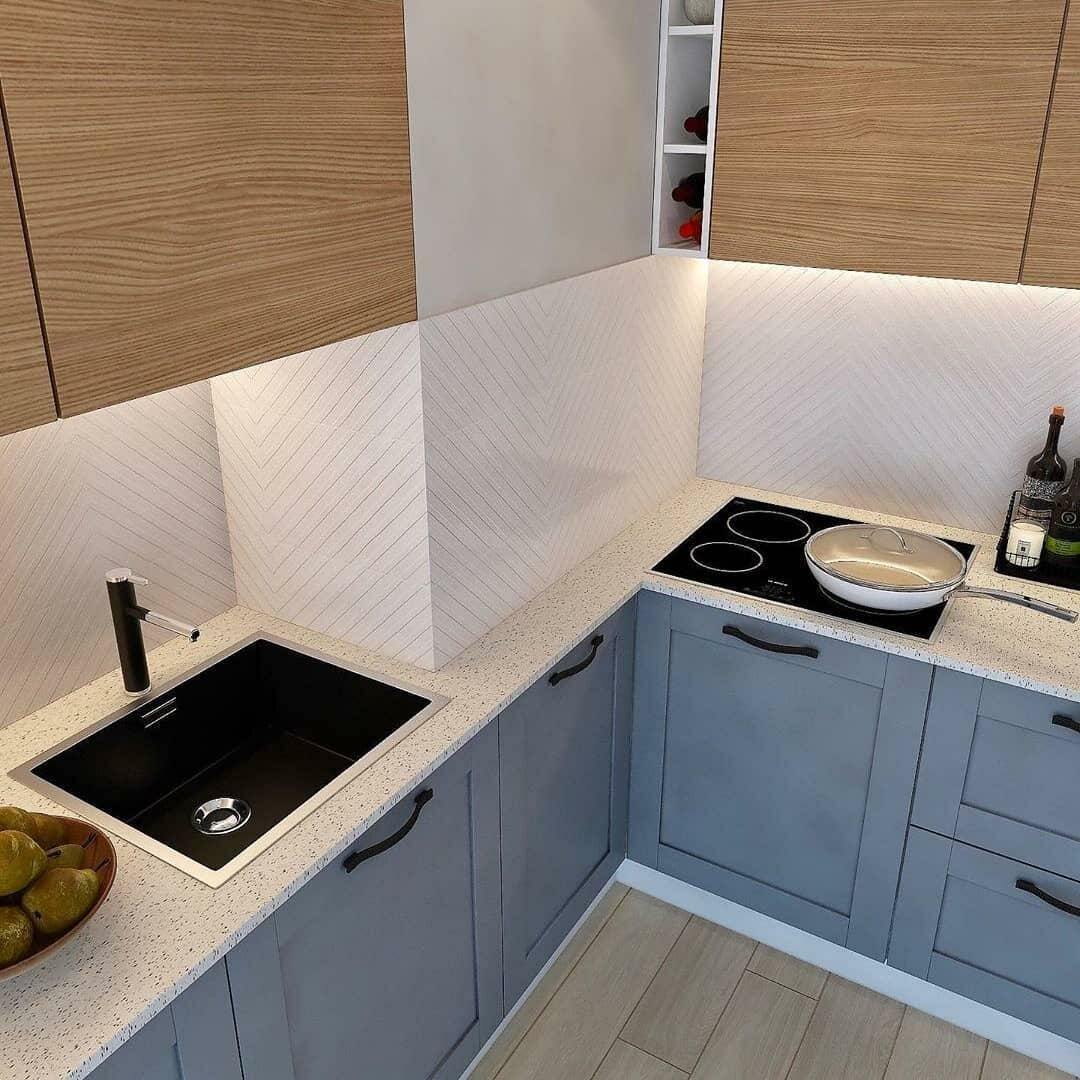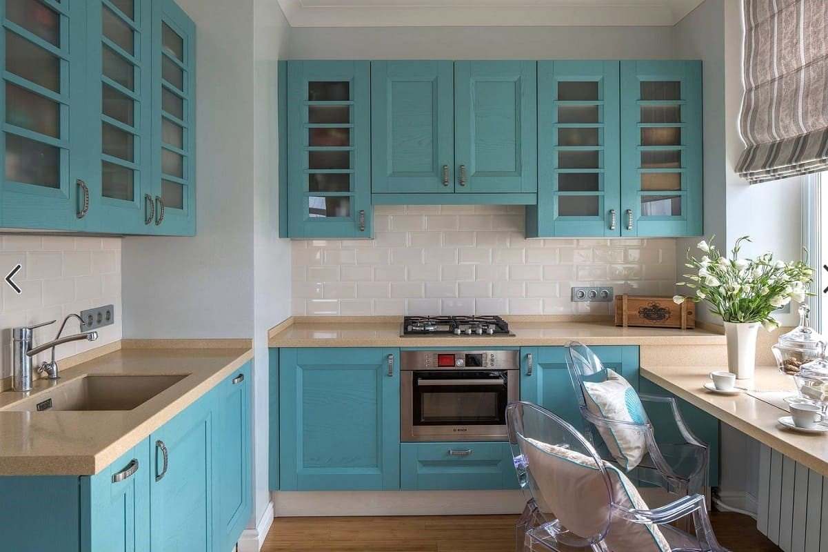 Кухонный гарнитур для маленькой кухни с вентиляционным коробом