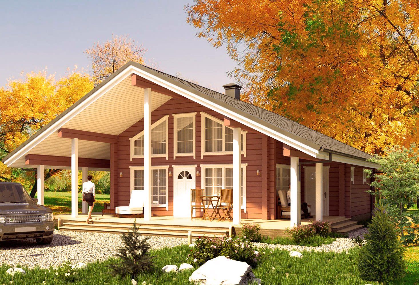 Дом в скандинавском стиле с панорамными окнами с двухскатной крышей