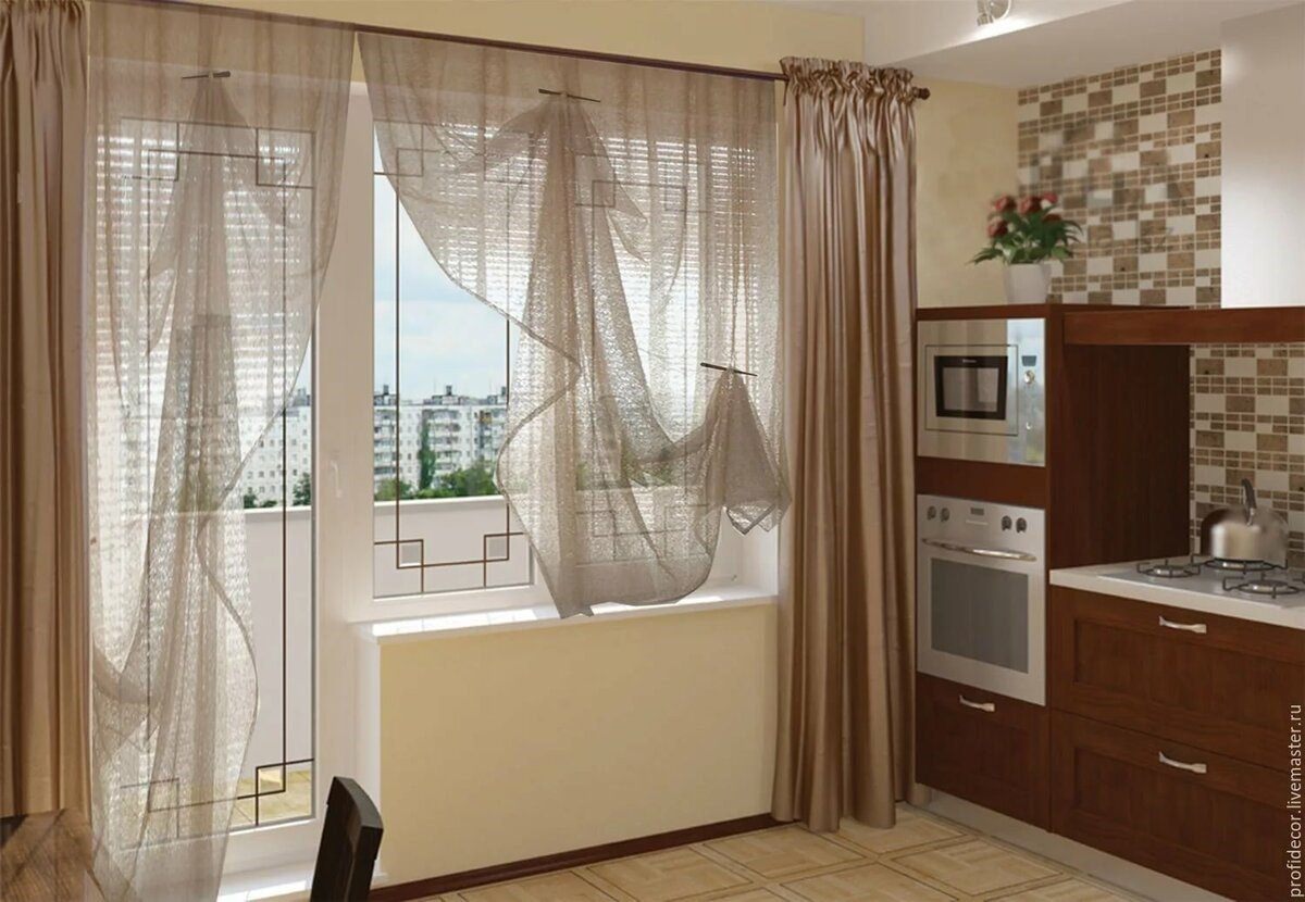 Шторы на окно с балконом на кухню