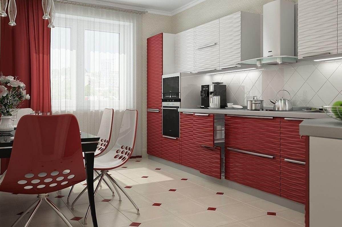 Шторы для кухни с красным гарнитуром