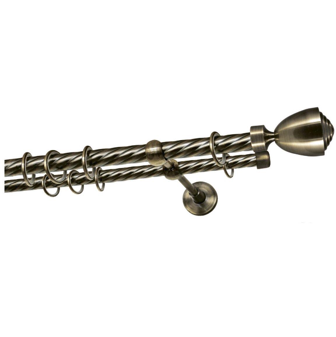 Карниз двухрядный Элегантс 240 см металл/пластик цвет бело-золотой