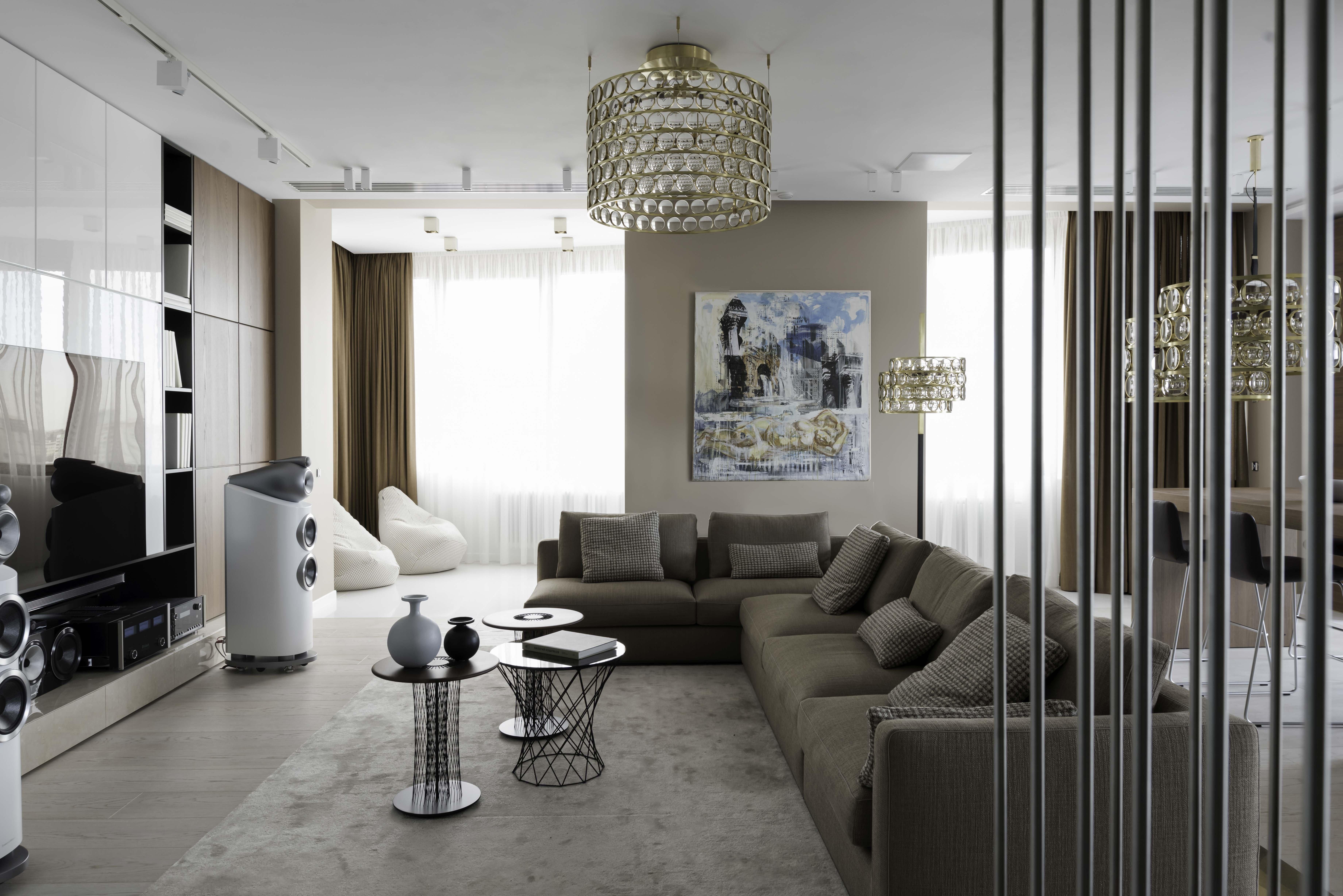 Стиль Модерн в интерьере гостиной с столовой