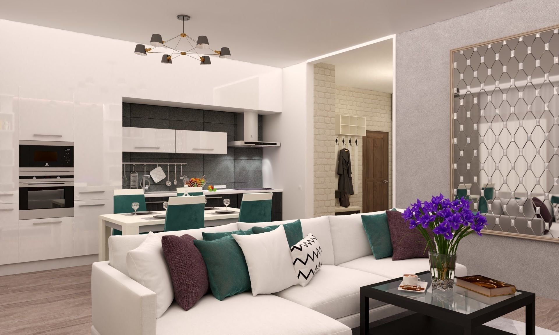 Зонирование кухни-гостиной 20 кв.м с 2 окнами