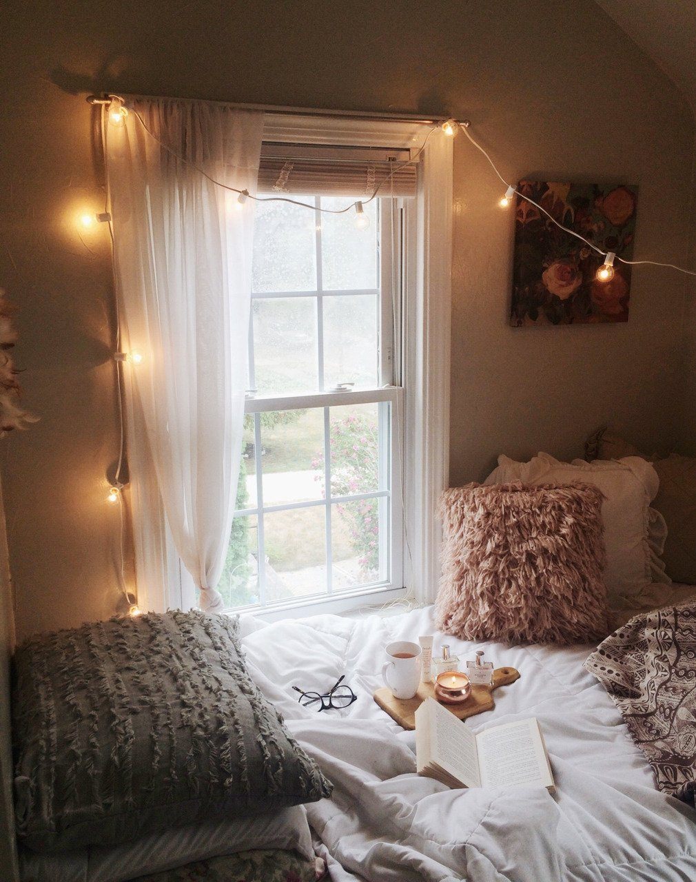 Уютная комната с гирляндами