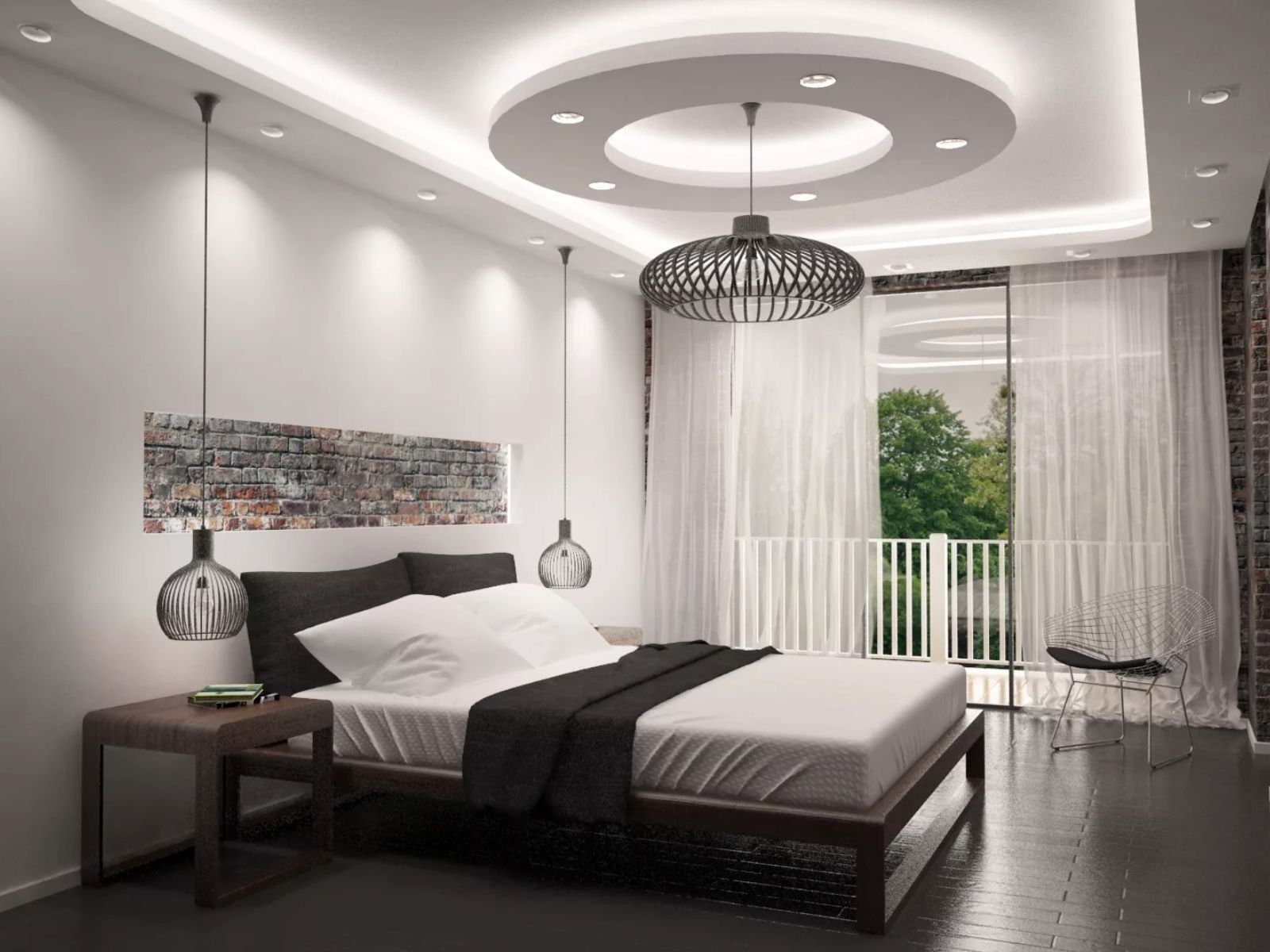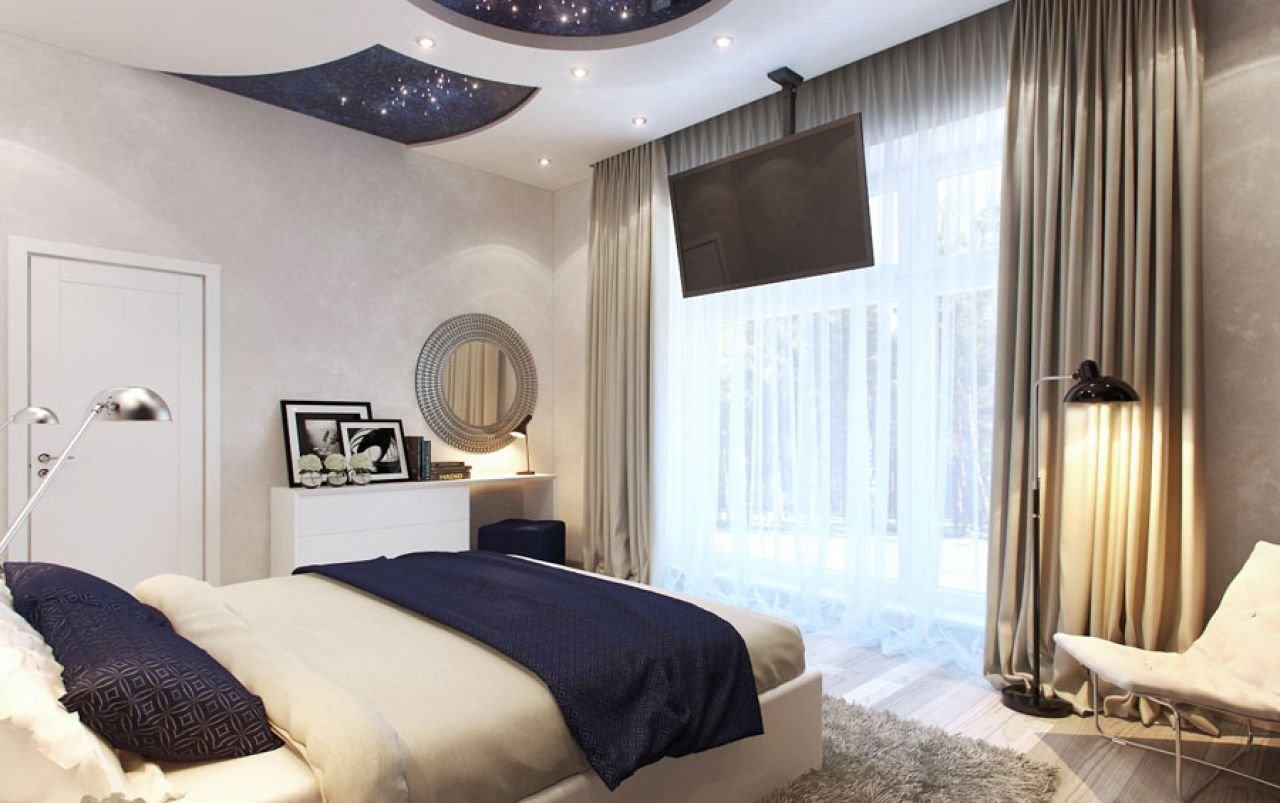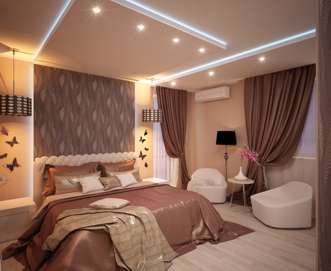 Потолок из гипсокартона с подсветкой в спальне 12кв
