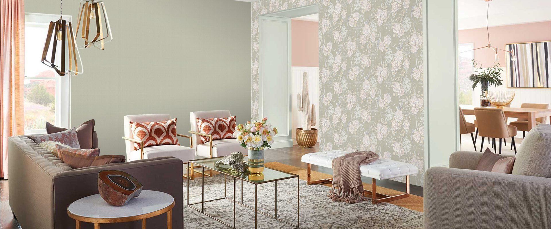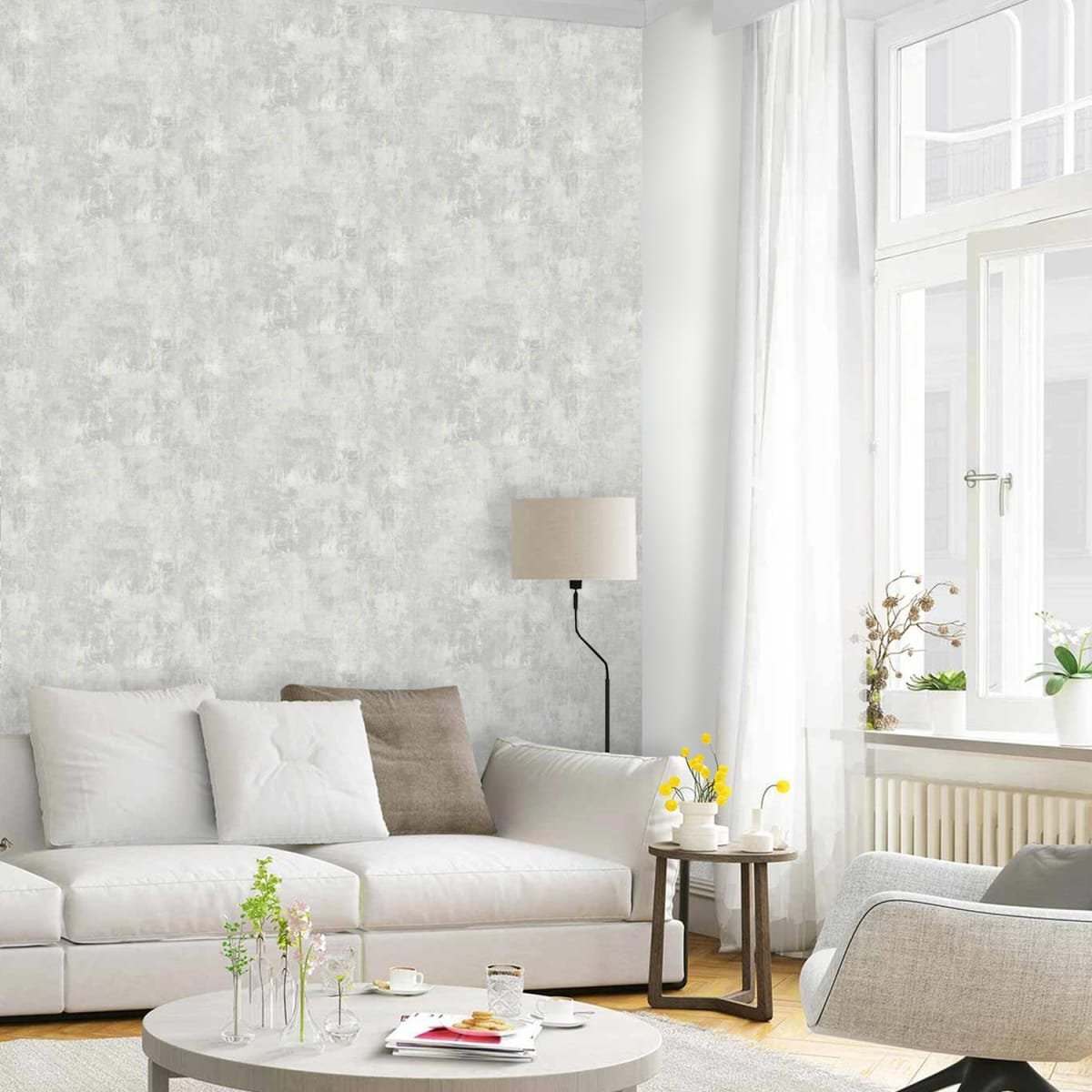 Серые обои компаньоны в гостиной
