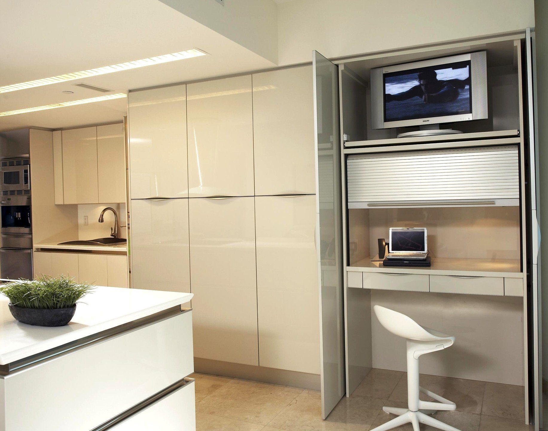 Кухонная техника спрятана в шкаф